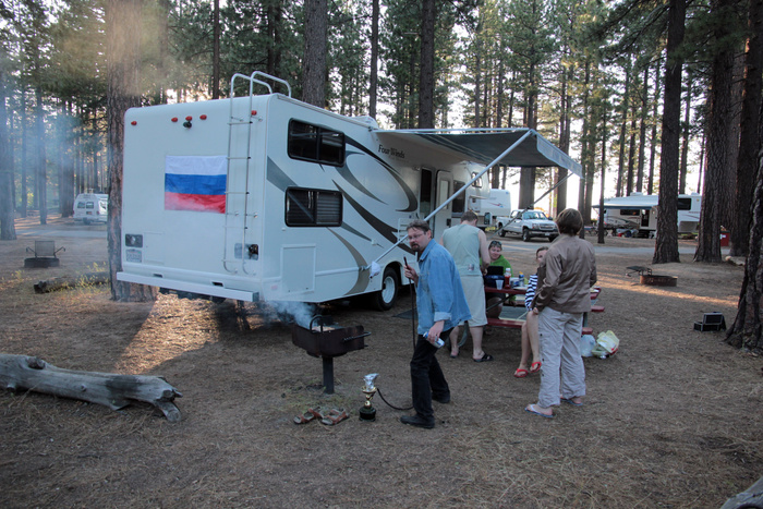 Но свою первую хохму в американских палестинах Сережа отмочил еще раньше. Во время празднования Дня Рождения Лины. А следует отметить, что отмечали мы его, простите за каламбур-тавтологию, раза три. Первый раз по свердловскому времени и парочку по-местному. Так вот только мы нашу колымагу на колесиках взяли и сделали привал на ночлег в лагере таких-же трейлеров, где-то в районе Санта-Барбары. Немного за нее заехали и устаканились на холме на берегу океана. Из допинга у нас было определенное количество баночного пива, да походный кальян. Первое вскрыли, второе раскумарили. А дальше включили природную дурь и стали распевать акапельно всяческие поздравительные песни. С таким условием, чтобы репертуар был всем знаком. В основном получилось классику советского наследия. И вот сидим себе пиво потягиваем, кальяном дымим, песенки поем. Никого не трогаем. Костер в темноте искрами в небо пуляет, напоминая ностальгические посиделки в пионерлагере. Внизу океан шумит. Романтика, хуле… Кстати, с океаном. Я ночью вышел за дверь по малой нужде. Конечно, уборная и в трейлере была. Но чего-то я решил не будить походом туда остальных компаньонов по выезду. И вот выбравшись наружу, я понял в чем дело. Это океан, так внизу прибоем о скалы бился. Откат-прилив-удар. Уфффф- Бум. Однако. Вот это моща. Впечатлило. Отлил под такое сопровождение стихии и дальше спать отправился. Так вот, а там у песенного костра, неожиданно нарисовалась какая-то нежданная фигура и давай курлыкать по американскому. Бабка сварливая, руками машет, шипит чего-то. короче, понятно, время позднее. А мы им своим пением спать мешаем. Хуясе, предъявы. Это кому — это безобидная песня про Чебурашку-дружочка помешать смогла? А вот оказалось, что есть такие субъекты в округе. Ну, чо, старость надо уважать. Пришлось закругляться, да и пиво неожиданно закончилось. В дальнейшем я взял ответственность за сей походный компонент. И баночный «Бад» местного производителя был в нашем холодильнике в любое время суток. Пыхнув на посошок, я отправился спать, как и все остальные, собрав предварительно нехитрые манатки. Напоследок пришлось высказаться, что злоебучая Шапокляк весь праздник обломала. Вот лучше бы он это не делал, ей Богу. ))) И как тогда начал действовать наш сверх воспитанный, совестливый товарищ? А полагаясь на интуицию. То есть, он ходил в ночи по лагерю-стоянке и стучался в КАЖДЫЙ попавшийся трейлер, после чего начинал извиняться. Когда он вернулся после в родные пенаты, неведомо. - Скажи Сережа, а ты весь лагерь разбудил в итоге? И бабку то нашел? IP: Logged |