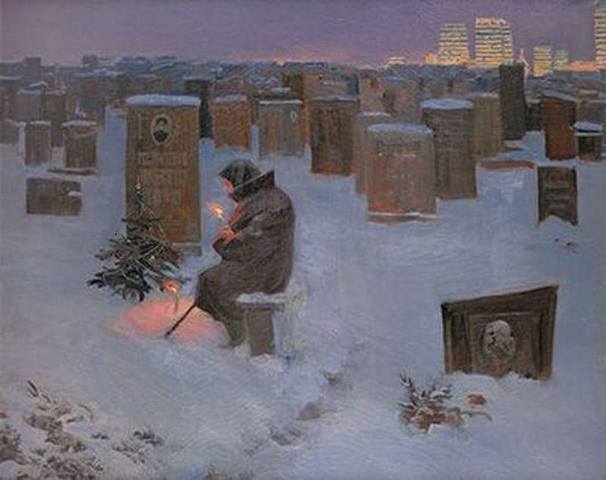 Вероятно на картине изображена мать на могиле сына (дочери). Мужа скорей всего, Новый Год - семейный праздник, встречать вместе пришла. IP: Logged |