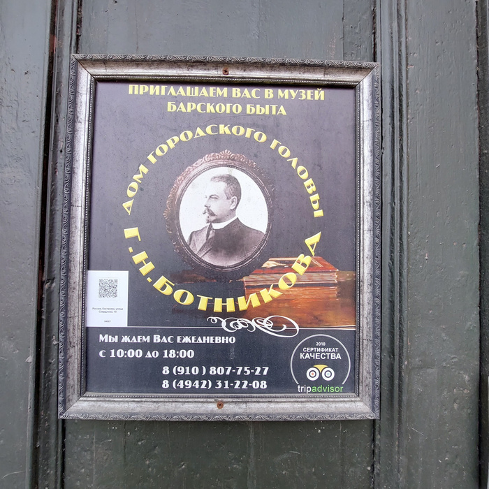 Официально музей называется Дом городского головы Г.Н.Ботникова. этот господин действительно жил в этом доме и 14 лет управлял Костромой. Никогда не был женат, но всю жизнь прожил с одной женщиной и имел с ней сына. Начинал как купец третьей гильдии, но быстро добрался до первой. Владел недвижимостью по всей Костроме и был одним из богатейших людей в городе. В революцию все потерял и пробовал эмигрировать. Не срослось. Вернулся в Кострому и умер здесь в бедности у дальних родственников гражданской жены. А вот несостоявшаяся супруга после октябрьских событий подалась в Москву и там у неё все очень хорошо сложилось. Дело в том, что она "из простых", выучена была на белошвейку и в сожительстве с Ботниковым ремесло не бросала. В Москве она стала обшивать жен новой власти и дожила до преклонных лет в относительном достатке. На этом про Ботниковых все. А дальше начинается самое интересное. IP: Logged |